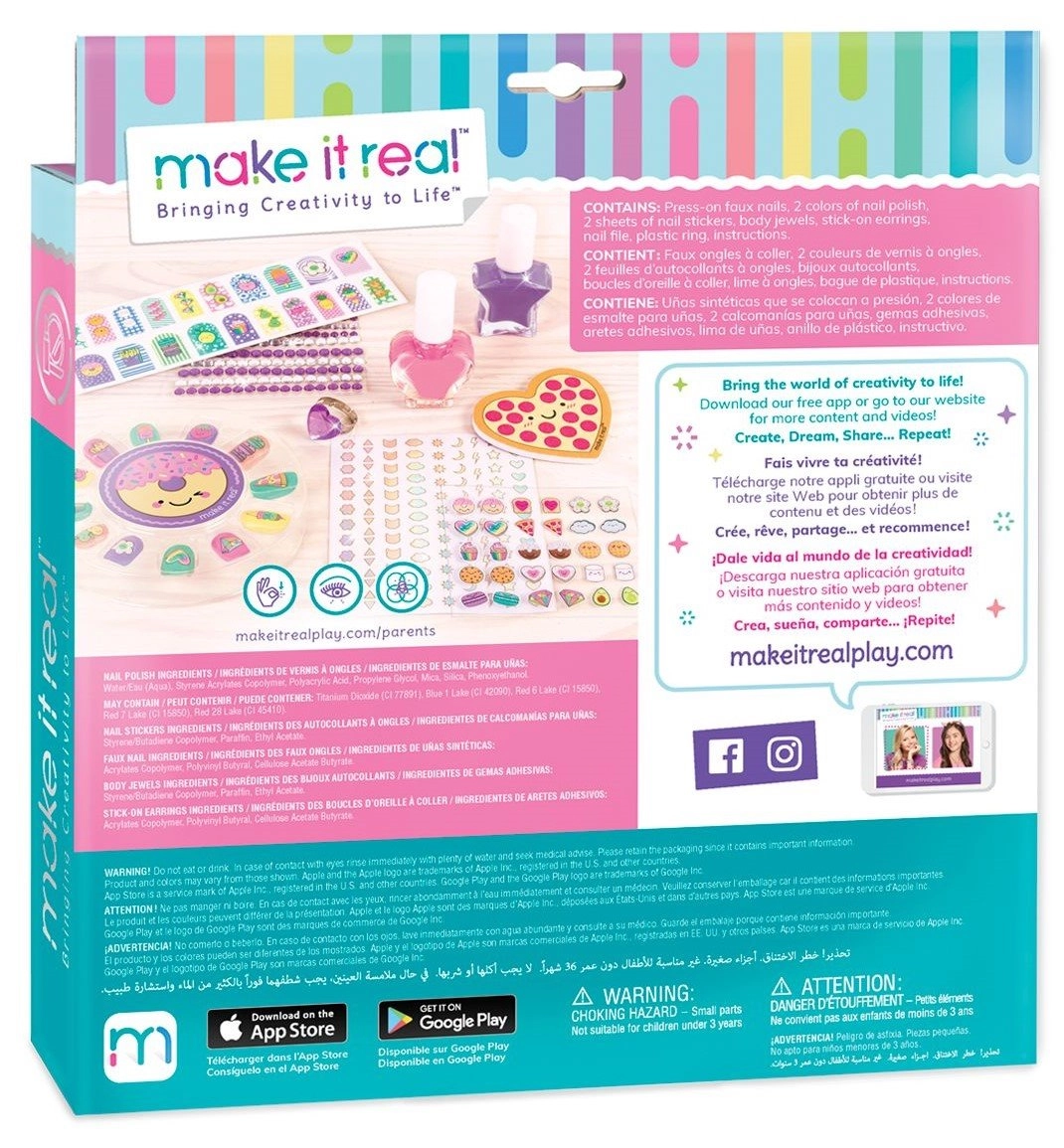Descubre la magia de la manicura en casa con el creativo set Make It Real. En el paquete encontrarás todo para unas uñas bellamente esmaltadas: 2 esmaltes de uñas, pegatinas, uñas postizas, piedras decorativas y accesorios para que tus uñas sean aún más brillantes. Diversión y estilo ideales para niñas y niños a partir de 8 años.