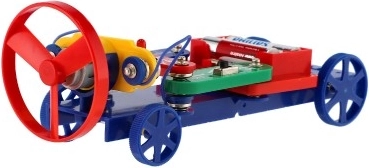 Ensambla un vehículo sencillo con motor e interruptor que se pone en marcha gracias a la hélice. Los niños ven al instante cómo el circuito eléctrico pone el modelo en movimiento.