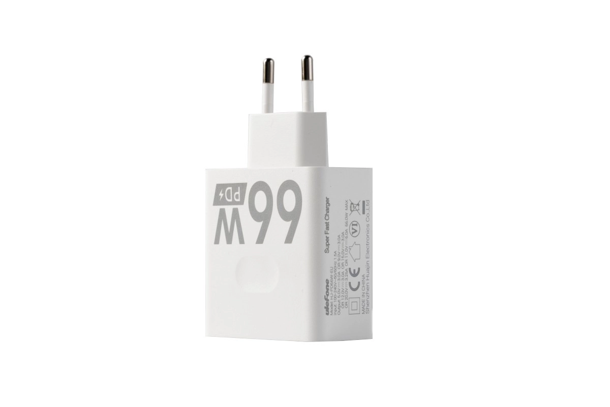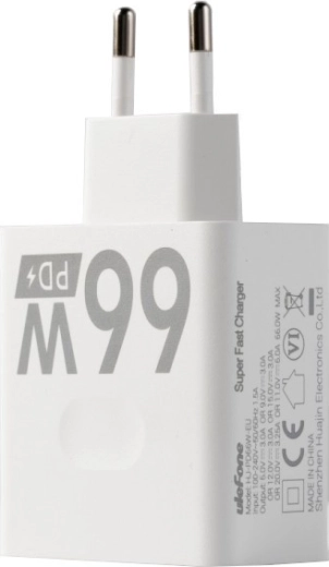 Este potente cargador blanco es ideal para teléfonos de la serie Ulefone ARMOR y otros dispositivos con USB‑C. Gracias a su potencia de 66 W, reduce notablemente el tiempo de carga y garantiza energía estable en casa y en tus desplazamientos.