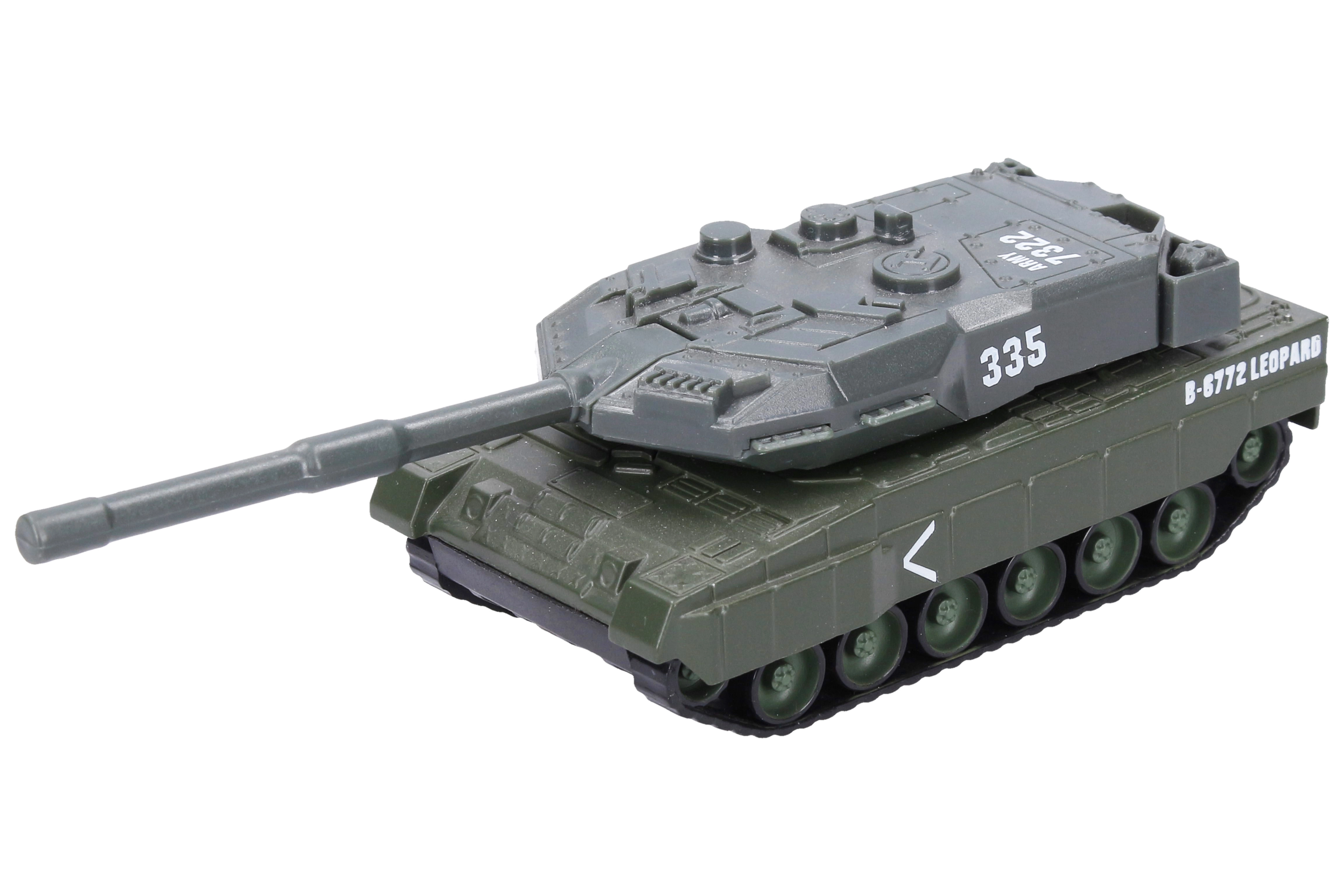 Este tanque de metal, detallado y bien acabado, ofrece a los niños mucha acción e imaginación. Gracias a su robusto cuerpo metálico, soporta un juego intenso y se convierte en un gran complemento para cualquier ejército infantil. Su tamaño compacto de 14,5 cm es ideal para la mano y para llevar de viaje.
