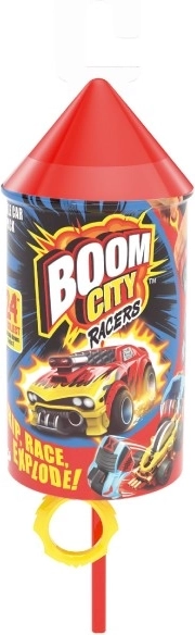 BOOM CITY RACERS trae acción, velocidad y sorpresa en cada paquete. Solo tira del aro, lanza el cohete y mira cómo tu coche superrápido sale disparado hacia adelante. Al impactar, el vehículo se “desarma” de forma divertida, aportando un efecto explosivo único que encantará a los niños.