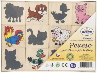 Pexeso de fichas de madera con impresión de animales y sus sombras. Ayuda de forma divertida a desarrollar la imaginación y la memoria de tus hijos.