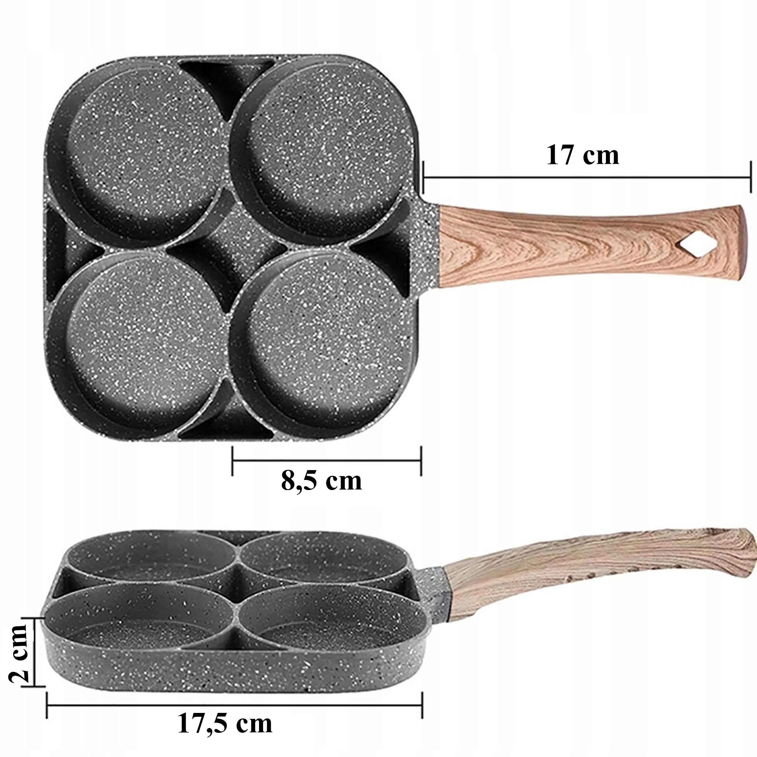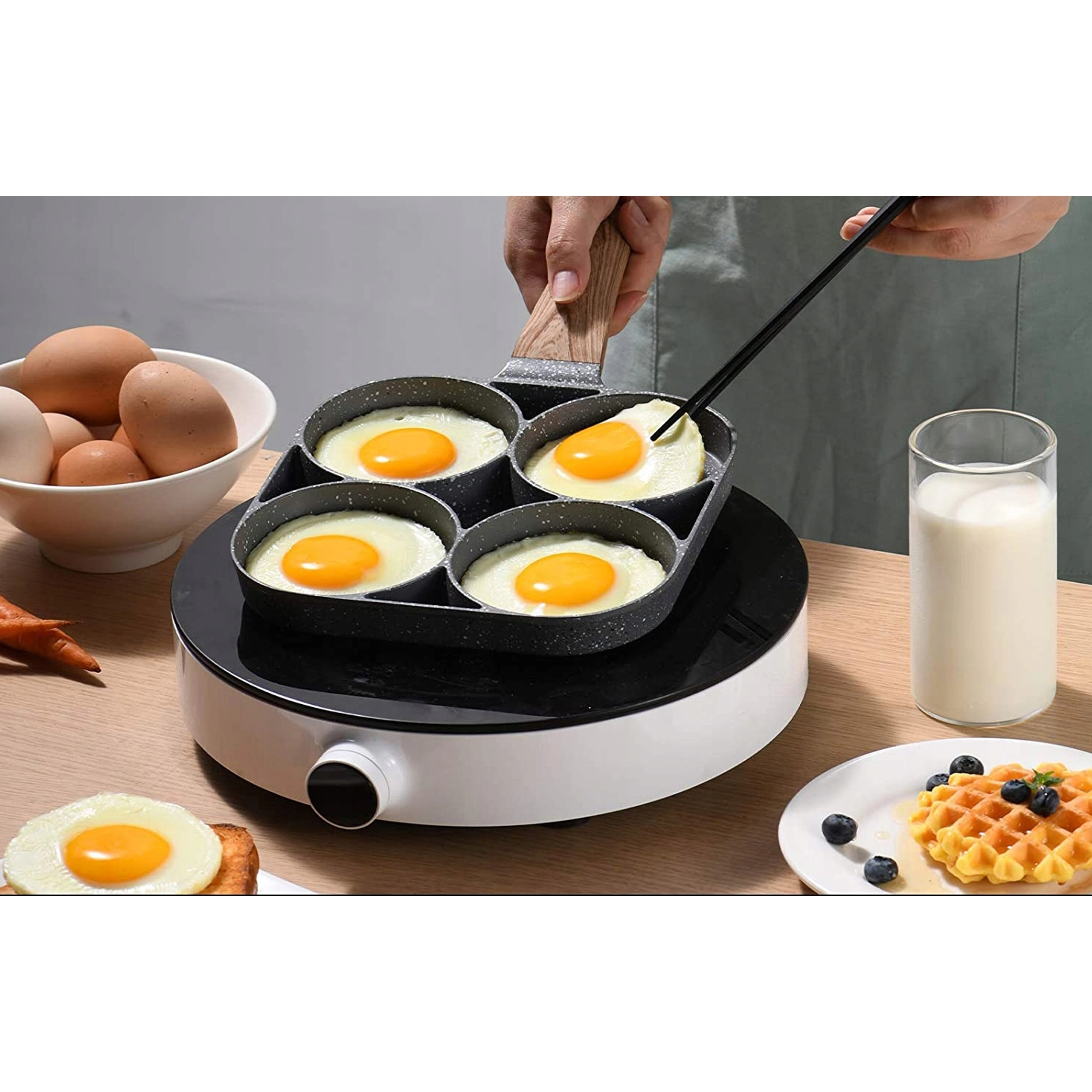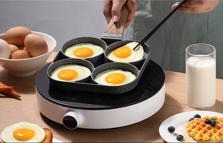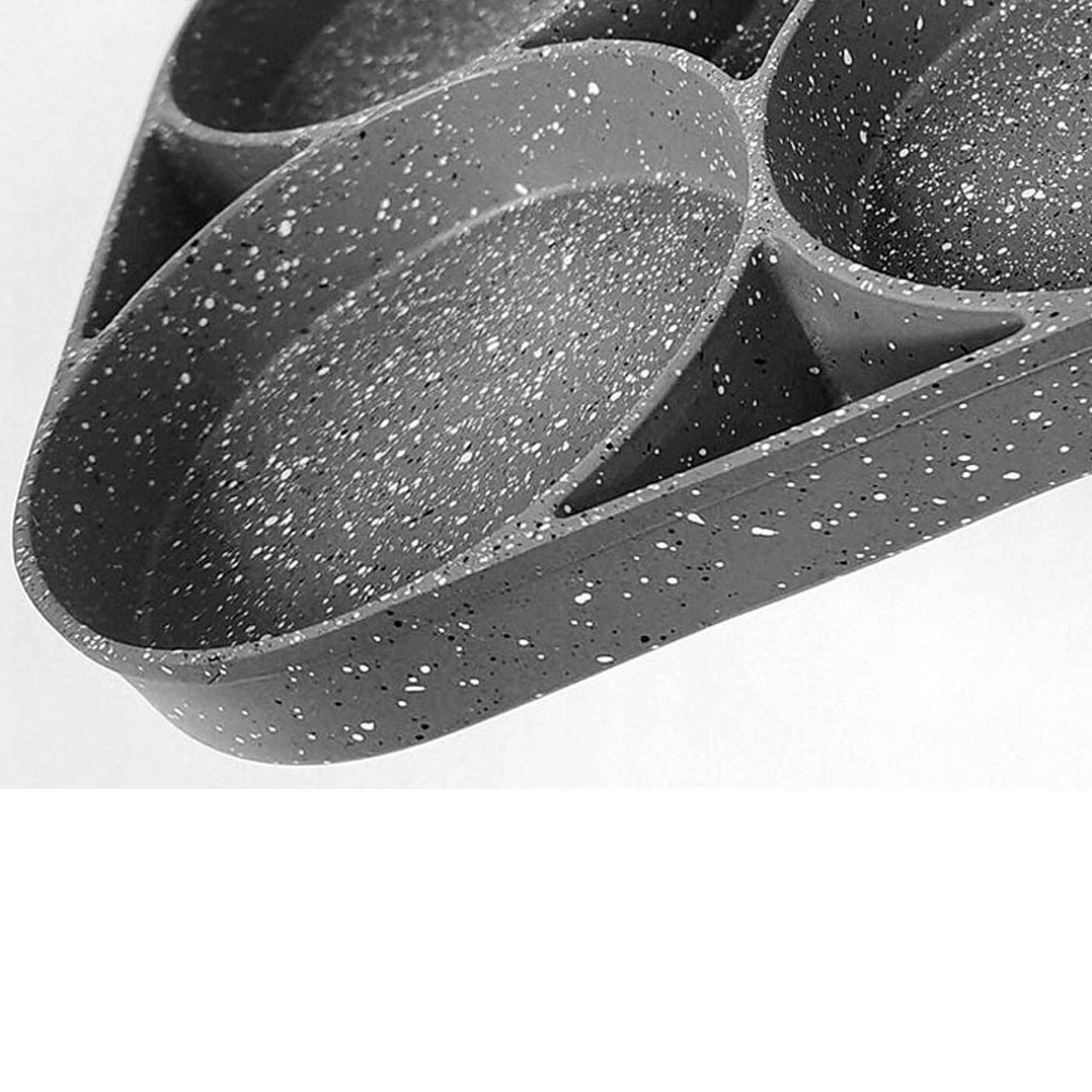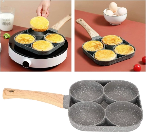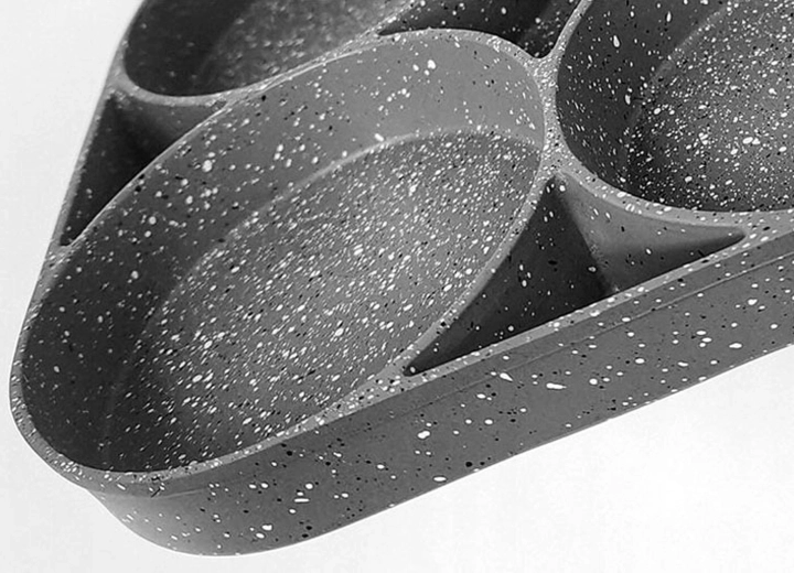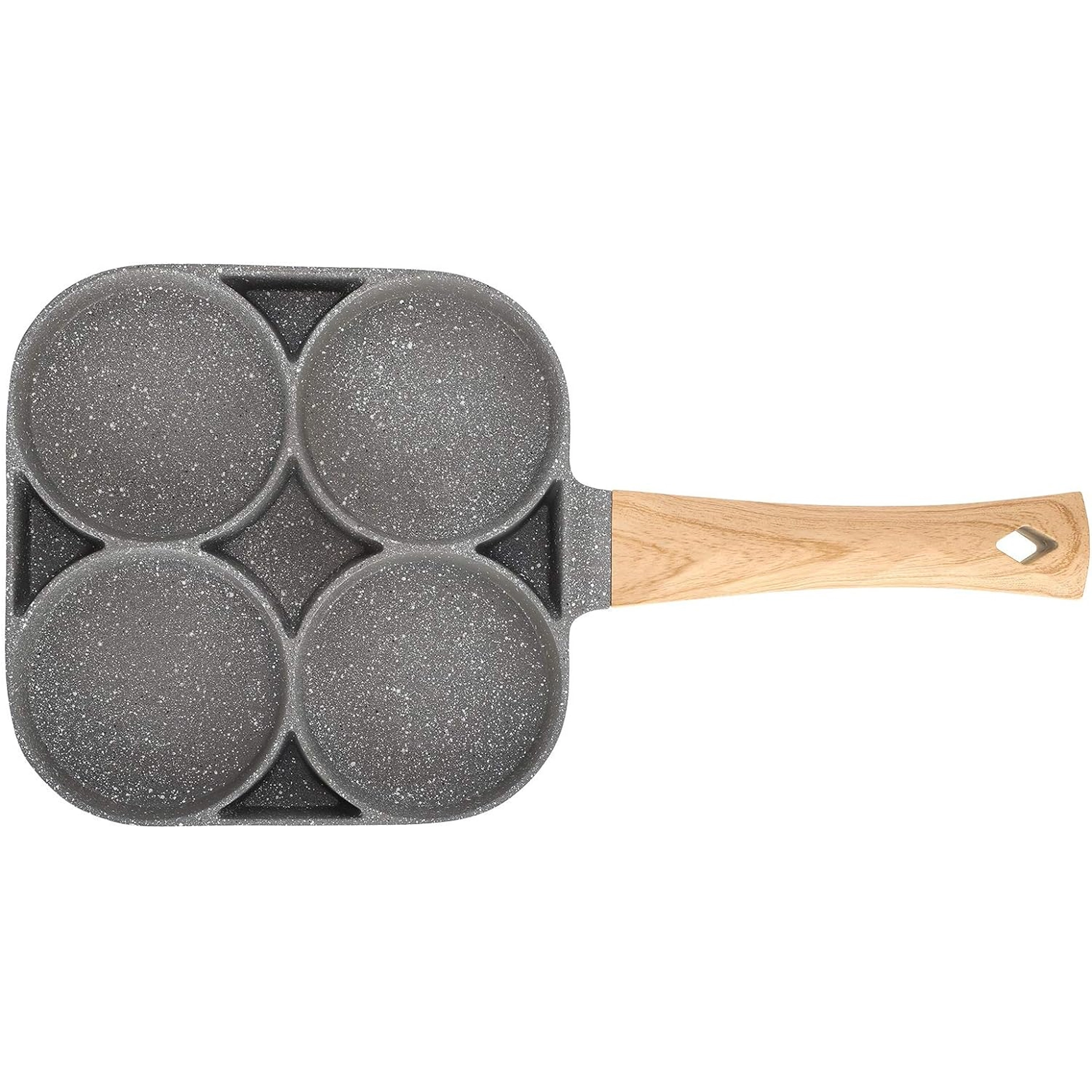 Esta sartén con cuatro secciones es ideal para preparar desayunos y tentempiés de forma rápida y equilibrada. Las cavidades separadas mantienen las porciones bien redondas y uniformes, mientras que el recubrimiento antiadherente moteado asegura un volteo sencillo sin que se pegue y una limpieza fácil.