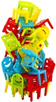 Sillas Inquietas es un excelente juego de equilibrio social para niños a partir de 5 años, que ofrece diferentes variantes de juego. El juego incluye 32 sillitas de plástico y 8 mesitas para múltiples posibilidades de juego. Jugar con una sola mano o crear tus propias reglas aporta más desafíos y diversión: