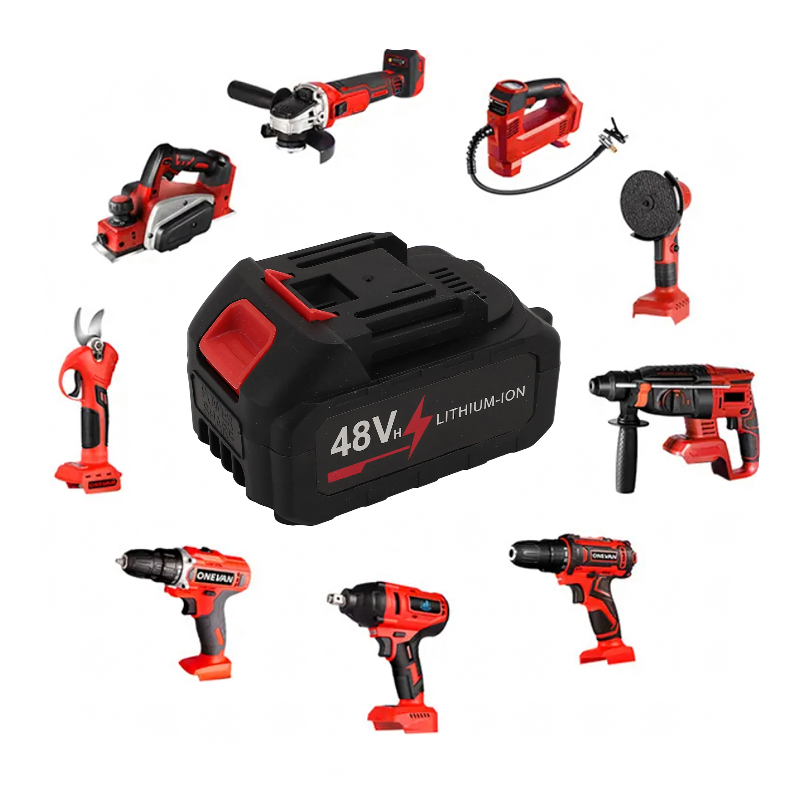 Esta batería Li-ion universal de 48 V con gran capacidad de 6000 mAh alimenta de forma fiable tus herramientas inalámbricas, desde taladros y atornilladores de impacto hasta mini motosierras y limpiadoras a presión a batería. El cuerpo robusto con aberturas de ventilación y cierre deslizante garantiza un montaje seguro y rápido en herramientas y cargadores compatibles.