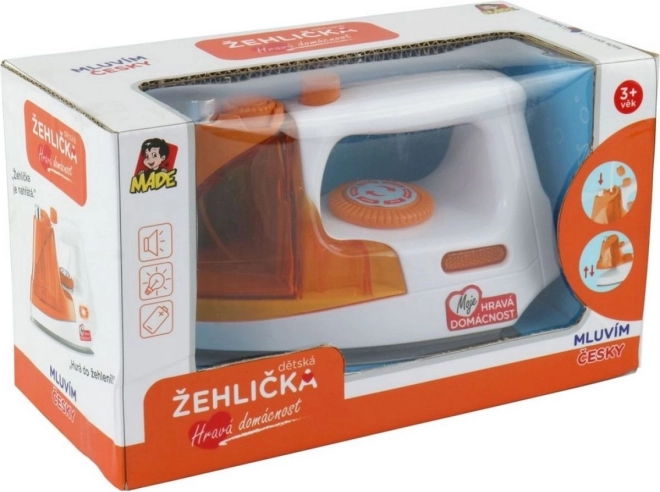 Todas las pequeñas ayudantes y ayudantes apreciarán una plancha de lujo a pilas, que alegrará el corazón de cualquier niño. La plancha se calienta y suena una melodía agradable junto con un anuncio en checo.