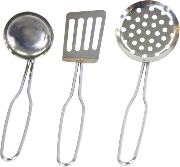 El cucharón, el colador, la espátula y la manopla permiten a los niños realizar todas las tareas de cocina durante el juego.