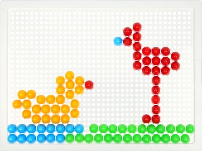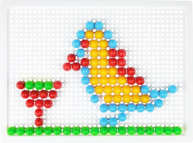 El mosaico LENA con 100 clavijas de colores es una opción ideal para el juego creativo en casa y en el jardín de infancia. Gracias al sencillo sistema de inserción en la placa perforada, los niños practican las capacidades de coordinación y la paciencia mientras crean sus propios motivos: animales, vehículos o figuras de fantasía.