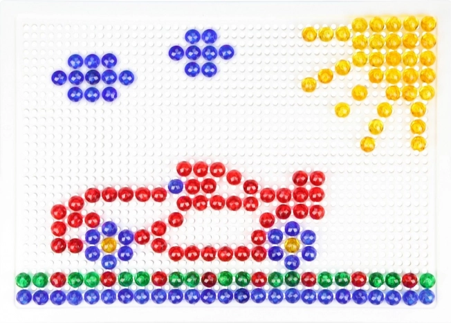 El contenido incluye una base cuadriculada y 260 clavijas cristalinas de 10 mm de diámetro. Gracias al gran número de piezas, los niños pueden crear imágenes variadas, combinar colores y mejorar su paciencia y pensamiento creativo, sin necesidad de plantillas.