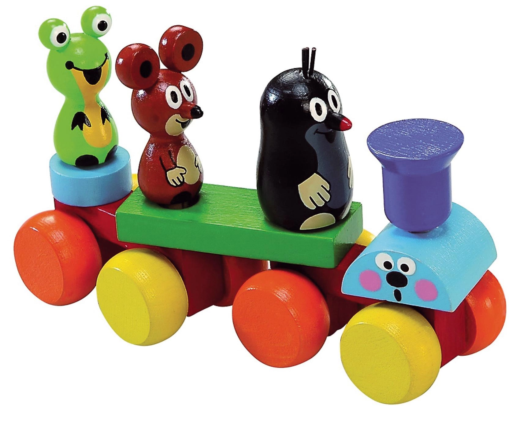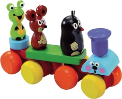 El popular trenecito de madera del mundo de cuentos de KRTEČEK es ideal para desarrollar la imaginación, la motricidad fina y la creatividad. Los niños pueden cambiar el orden de las figuritas y probar diferentes combinaciones, lo que garantiza mucha diversión en cada juego. La locomotora con dos expresiones —alegre y sorprendida— aporta un aspecto juguetón y posibilidades narrativas.