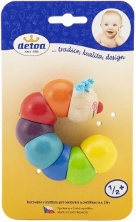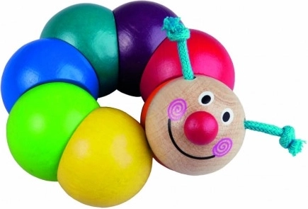 Esta simpática oruga de la marca DETOA está fabricada con madera de calidad y cuentas de colores ensartadas en una goma elástica. Al apretarla y doblarla, la oruga se mueve, lo que entretiene a los niños y, al mismo tiempo, entrena de forma natural su agarre y la coordinación ojo–mano.