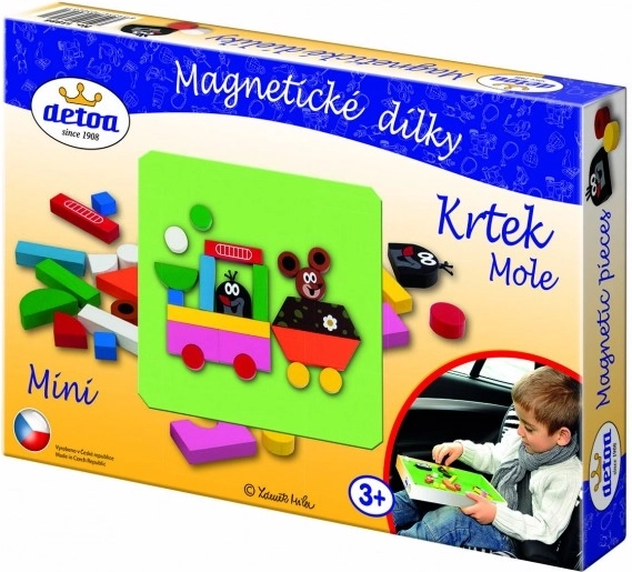 Descubre la magia del clásico juguete checo con las piezas magnéticas de Detoa inspiradas en el querido Topo Krtek. Los elementos de madera llevan imán en la parte posterior, por lo que se adhieren perfectamente a pizarras magnéticas, al frigorífico u otras superficies metálicas. El set es ideal para el juego libre, crear historias y los primeros proyectos creativos.