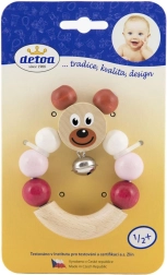 El sonajero Detoa con oso en color rosa es el primer juguete ideal para el desarrollo del oído, el tacto y la motricidad. El suave sonido de la campanilla atrae al bebé, y los materiales agradables y su forma favorecen un agarre seguro y cómodo.