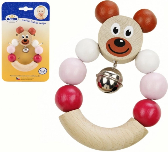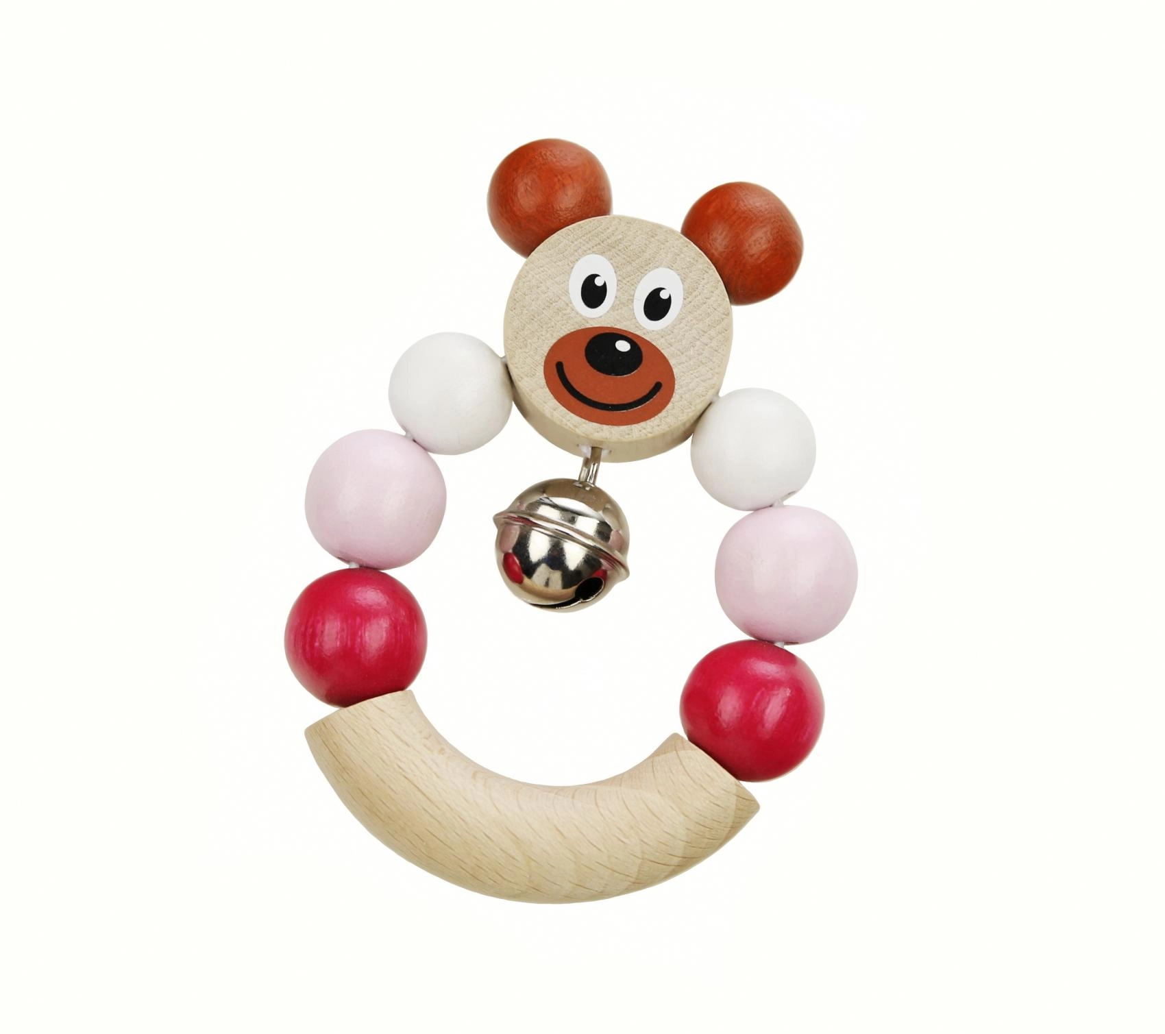 Un adorable sonajero de madera con un osito en color rosa encantará a cualquier bebé. La campanilla integrada tintea suavemente, el sonajero es muy ligero y, gracias a sus dimensiones compactas de 7 × 9 cm, se mantiene perfectamente en las pequeñas manitas. El producto cumple con los estrictos requisitos de la UE en materia de seguridad de juguetes y cuenta con el certificado Juguete seguro.