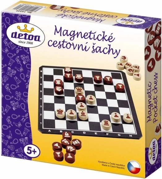 El ajedrez de viaje magnético Detoa ofrece una gran diversión para toda la familia. Este set incluye un tablero metálico de 16,5x16,5 cm que mantiene las piezas en su sitio gracias a su base magnética. Así no tendrás que preocuparte de que las figuras se muevan durante la partida.