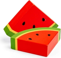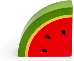 Esta rodaja de sandía de madera destaca por sus colores intensos y su acabado realista. Es ideal para la cocinita infantil, la tienda o como complemento para juegos de cocina. Favorece la motricidad fina, la imaginación y el desarrollo del lenguaje al nombrar alimentos.