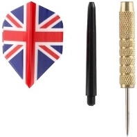 El juego de dardos incluye tres dardos con robustas puntas metálicas y atractivas plumas Union Jack, que aportan estilo a tus partidas. Los dardos están diseñados para satisfacer tanto a jugadores aficionados como profesionales. Los vástagos y plumas intercambiables permiten una fácil personalización según tus necesidades.