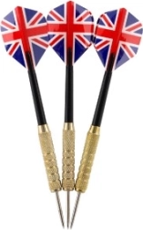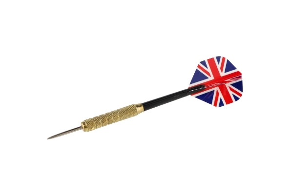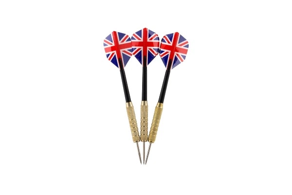 Cada dardo está equipado con plumas con diseño Union Jack, que no solo aportan estética, sino que también ayudan a mejorar la estabilidad de los dardos durante el vuelo.