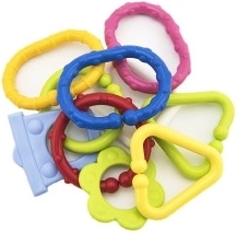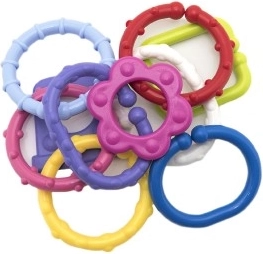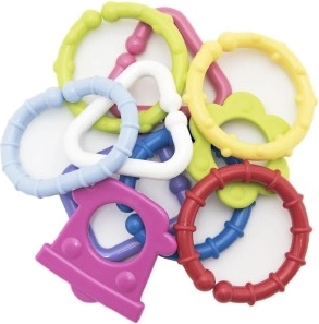 Este juego de coloridas formas plásticas es el primer juguete ideal para bebés. Las piezas se encajan fácilmente y se mantienen firmes, de modo que los niños pueden crear cadenas y construcciones sencillas una y otra vez. Las distintas texturas y colores proporcionan rica estimulación sensorial y el efecto de sonajero capta su atención y los calma.