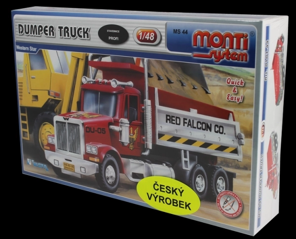 Monti System MS 44 – Dumper Truck es un popular kit que no requiere pegado ni pintura. Las piezas encajan con precisión, por lo que el montaje es rápido, limpio y entretenido. En escala 1:48 obtendrás un atractivo modelo de camión volquete WESTERN STAR que encantará a aficionados a la técnica de todas las edades.