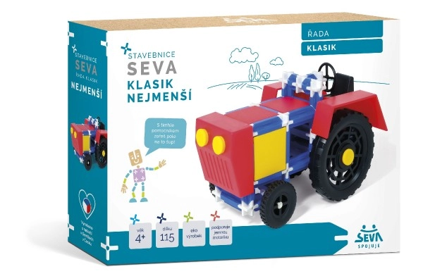 Seva Classic es un juego de construcción creativo diseñado para los más pequeños constructores, que permite a los niños desarrollar el pensamiento técnico y la destreza manual. En el paquete encontrarás una guía práctica que facilita el montaje del tractor. La variabilidad del set permite construir distintos modelos como vehículos funcionales, máquinas, aviones, edificios o muebles.