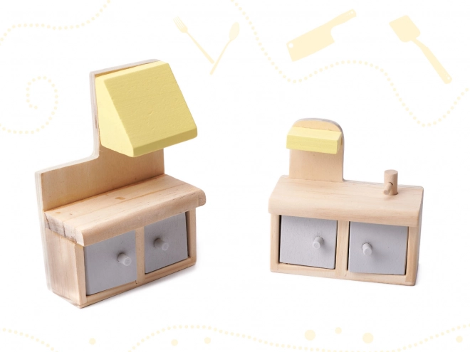 Una pequeña cocina de madera con detalles realistas, ideal para preparar comidas imaginarias y la diversión de tus hijos.
