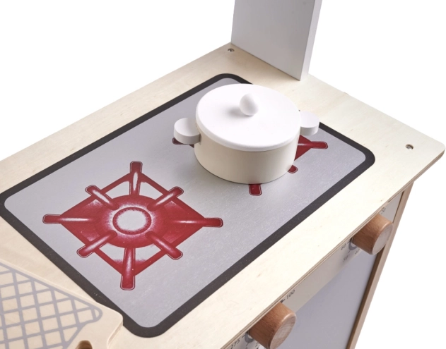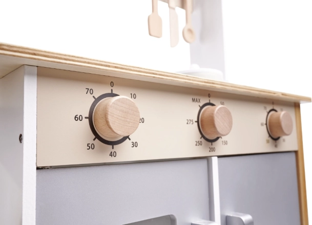 Desarrollo de habilidades: Gracias a la simulación de la cocina real, los niños adquieren habilidades importantes como la organización del espacio y mejoran la motricidad fina. Los materiales naturales aseguran un enfoque ecológico del juego, ideal para padres enfocados en el desarrollo sostenible.