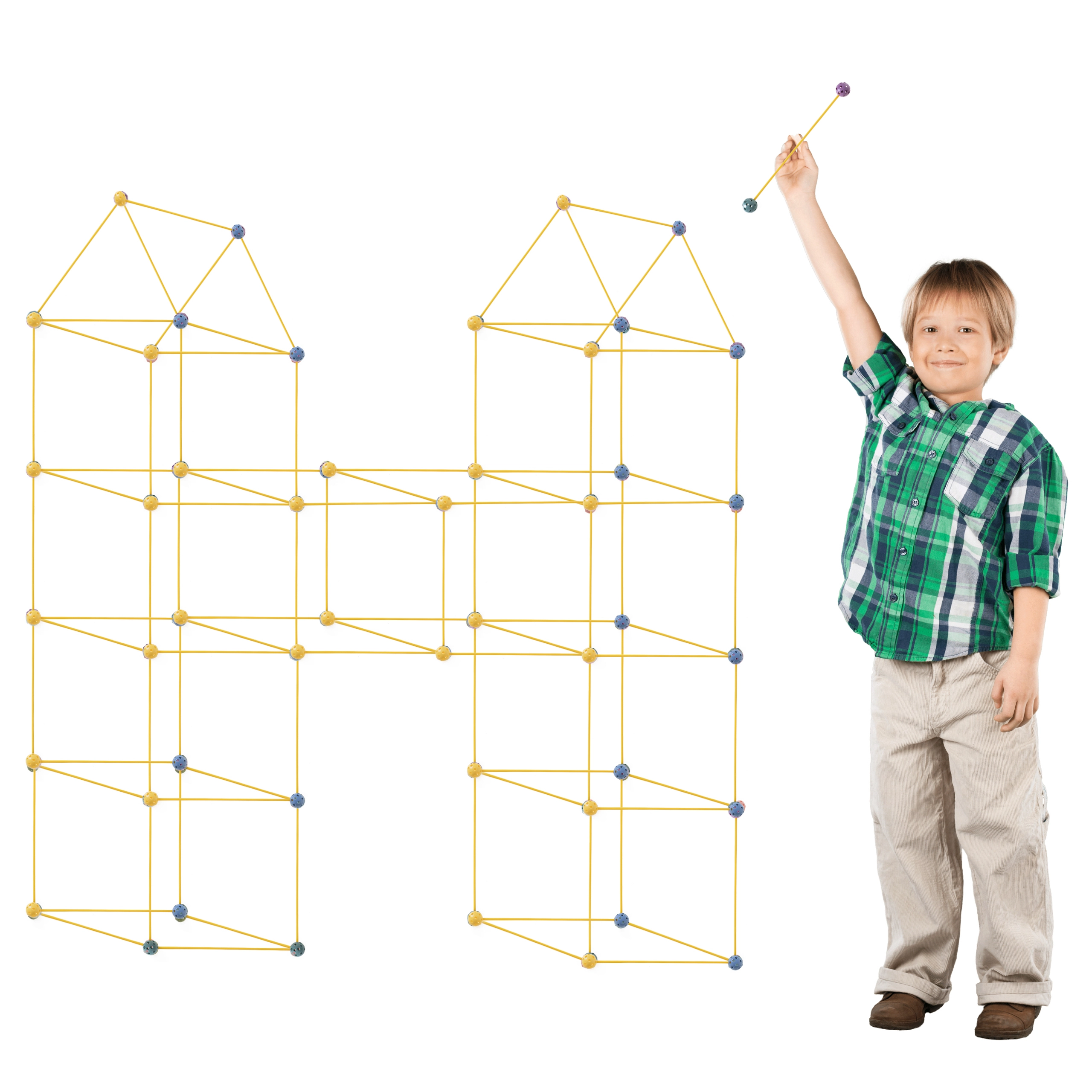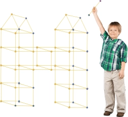 Descubre la magia de la construcción creativa con nuestro increíble set, que permite a los niños construir una amplia variedad de estructuras como tiendas, bases o incluso casetas para perros. El set incluye 75 piezas, con 51 varillas amarillas y 24 bolas de conexión de varios colores, que proporcionan posibilidades de construcción infinitas.