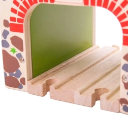 El túnel se integra fácilmente en la vía existente. Es compatible con las vías y trenes de madera más populares de distintas marcas.