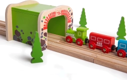 El túnel está fabricado con materiales naturales de calidad y obtenidos de forma responsable y es compatible con la mayoría de circuitos de trenes de madera del mercado. Cumple las normas europeas de seguridad actuales, para que los niños jueguen con seguridad y los padres con tranquilidad.