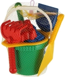Este juego de plástico para arena incluye diversas herramientas y moldes para construir y crear de forma fantástica. Gracias a su práctico empaque en malla con dimensiones de 20x28x12 cm, puedes transportar fácilmente todo el set.