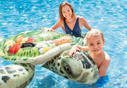 La tortuga inflable INTEX aporta gran diversión a cualquier piscina. Su forma ergonómica garantiza comodidad y estabilidad, mientras que el diseño realista con motivos tropicales la convierte en un llamativo accesorio para las actividades veraniegas. Gracias a sus dos cámaras de aire y a las asas firmes, niños y adultos disfrutarán de un paseo seguro.