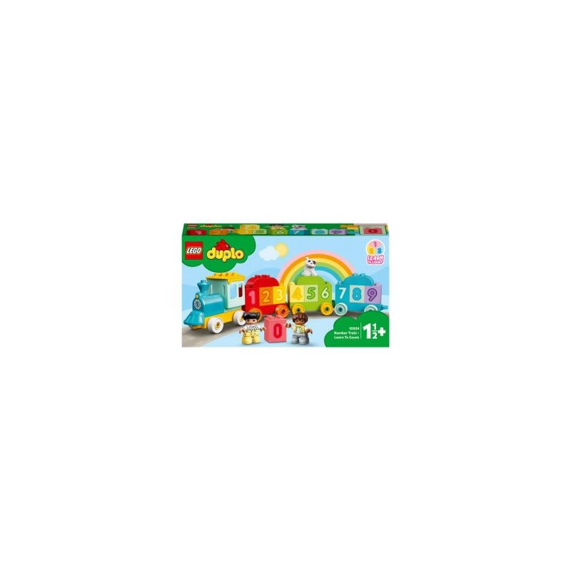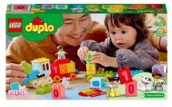 El colorido set LEGO DUPLO Tren de los Números ofrece una forma divertida de enseñar a los niños a partir de 18 meses los números del 0 al 9, los colores y la motricidad fina. Los vagones con ruedas, las piezas fáciles de agarrar y las figuras de una niña, un niño y un perrito inspiran el juego creativo y las primeras habilidades matemáticas.