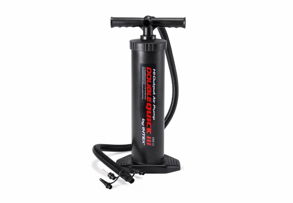 La Intex Double Quick III es una práctica bomba manual diseñada para un inflado rápido y cómodo. El mecanismo de doble acción impulsa aire tanto al subir como al bajar, lo que acorta significativamente el tiempo de inflado y ahorra esfuerzo. Su construcción firme con apoyo para el pie mantiene la bomba en su sitio incluso durante un uso intenso.