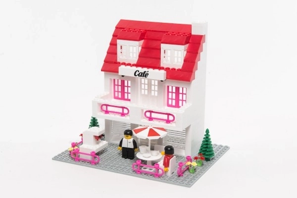 Construye tu propia pastelería de bloques CHEVA con balcón y zona de asientos exterior. El set incluye 215 piezas en un práctico cubo, un manual claro y figuras de camarero y clienta. Ideal para el juego creativo y el desarrollo de la imaginación de niños a partir de 6 años.