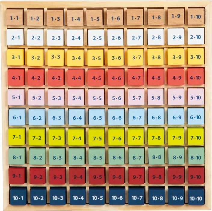 Los coloridos cubos de madera con ejercicios motivan a los niños a explorar y repetir la tabla de multiplicar cada día.