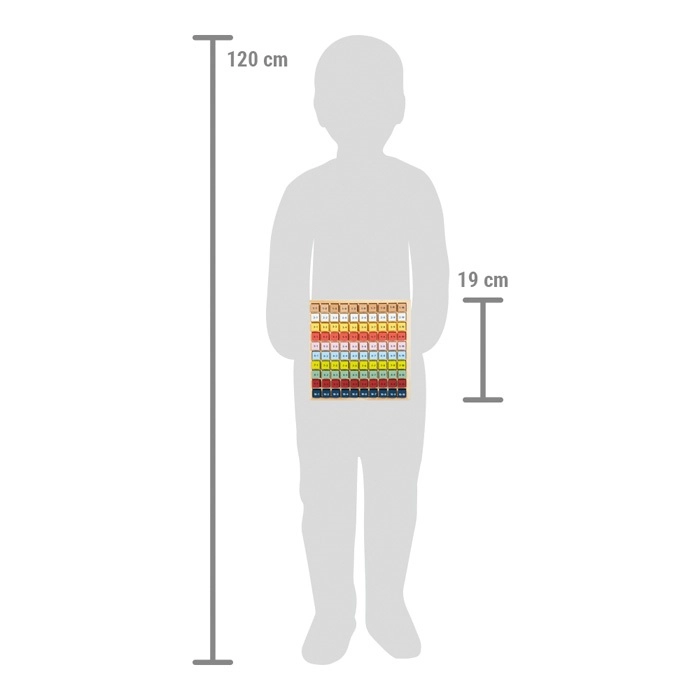Esta tabla de madera con cubos de colores es ideal para los primeros pasos en el mundo de las matemáticas. Mediante encajar y ordenar, los niños entrenan la multiplicación, el reconocimiento de números y la coordinación mano-ojo. La sólida estructura de madera garantiza una larga vida útil y un uso seguro.