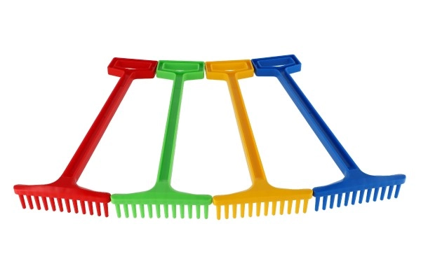 Rastrillo infantil de plástico ligero y resistente con empuñadura cómoda para un agarre seguro. Ideal para el arenero y para iniciarse en la jardinería. Disponible en cuatro colores alegres: rojo, azul, verde y amarillo. Fabricado en la República Checa con plástico de calidad y no tóxico para un juego seguro y duradero.