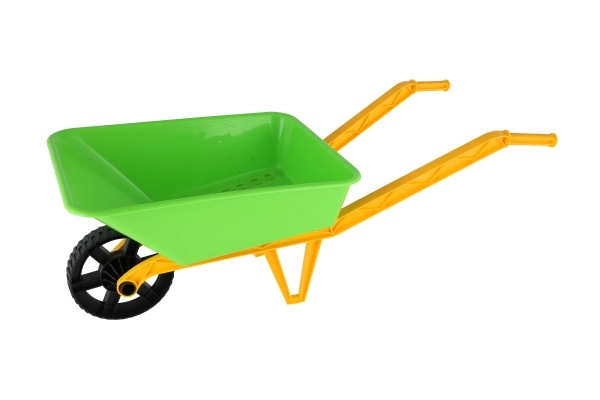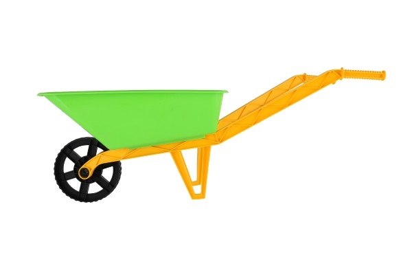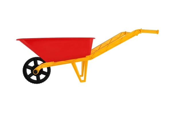 La carretilla está hecha de plástico ligero y duradero, lo que la hace ideal para niños que quieren jugar en el jardín o en el arenero.