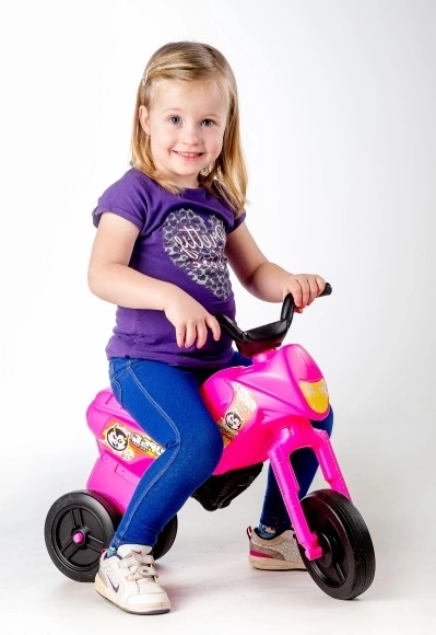 El correpasillos Enduro Yupee es una gran elección para las primeras experiencias de conducción de los más pequeños. Su estructura estable con mayor ancho de vía trasero ayuda a mantener el equilibrio, la horquilla delantera direccionable mejora la maniobrabilidad y el plástico ligero permite que el niño lo transporte y lo maneje con facilidad.