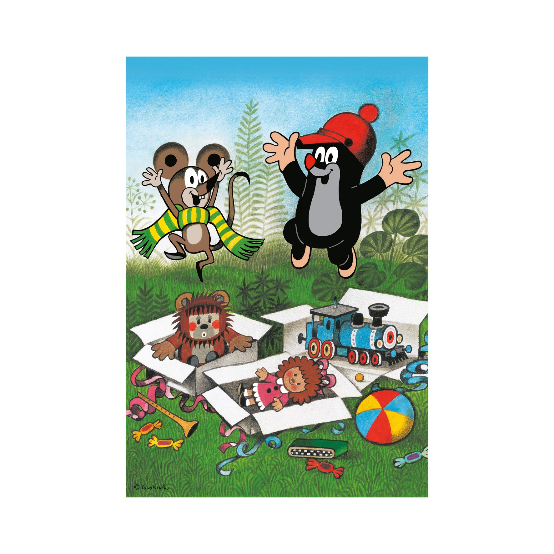 Descubre la magia de las ilustraciones clásicas de Zdeněk Miler en un set de dos rompecabezas que ofrecen mucha diversión y a la vez apoyan las habilidades de los niños. Cada puzle tiene 48 piezas y está adaptado a las manitas de los preescolares. Gracias al cartón rígido, las piezas se encajan fácilmente y mantienen bien su forma.