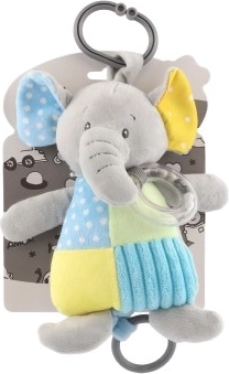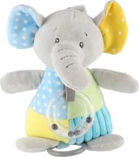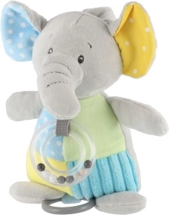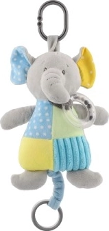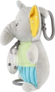 El compañero de juego perfecto para la cuna o el cochecito gracias a su clip seguro, que facilita colgarlo. La superficie texturizada del elefante favorece la exploración táctil, mientras que su diseño colorido atrae la atención visual del bebé.