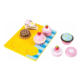 El set de pastelitos dulces Small Foot encantará a todos los pequeños reposteros y anfitriones. En la bandeja firme, los niños sirven 6 adorables postres que, gracias al velcro, pueden separarse y volver a ensamblarse en nuevas combinaciones. El juego desarrolla de forma natural la motricidad fina, la creatividad y las habilidades sociales.