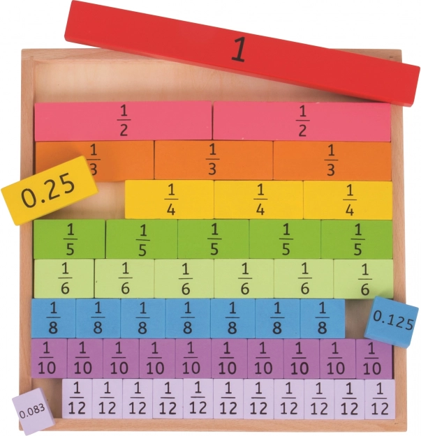 Una ayuda divertida y educativa para pequeños matemáticos, que ayuda a los niños a comprender las fracciones y sus relaciones. Gracias a las piezas de colores, asimilan fácilmente conceptos matemáticos básicos.