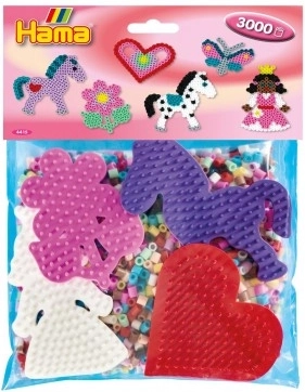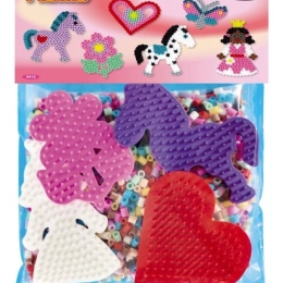 El set ofrece aprox. 3000 cuentas, 4 bases con forma y papel de planchado en una práctica bolsa. Un inicio ideal para la creación creativa sin compras adicionales.