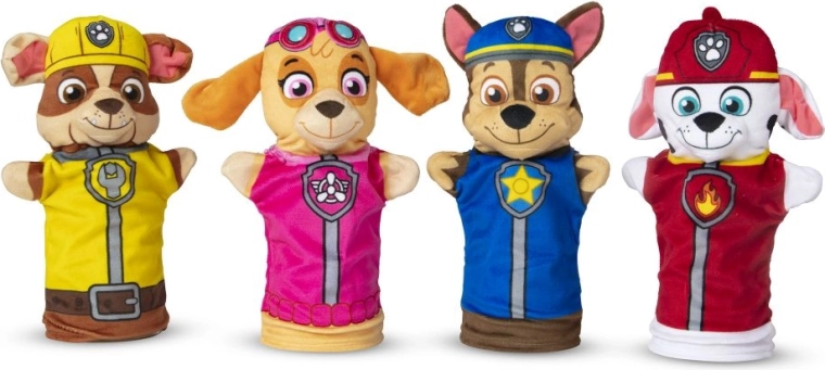 Traslada el mundo de acción de PAW PATROL a la habitación infantil. Cuatro marionetas detalladas —Chase (policía), Marshall (bombero), Skye (piloto) y Rubble (constructor)— están hechas de un material suave y agradable al tacto y, gracias a su tamaño universal, se adaptan cómodamente tanto a la mano de un niño como a una mano adulta pequeña.