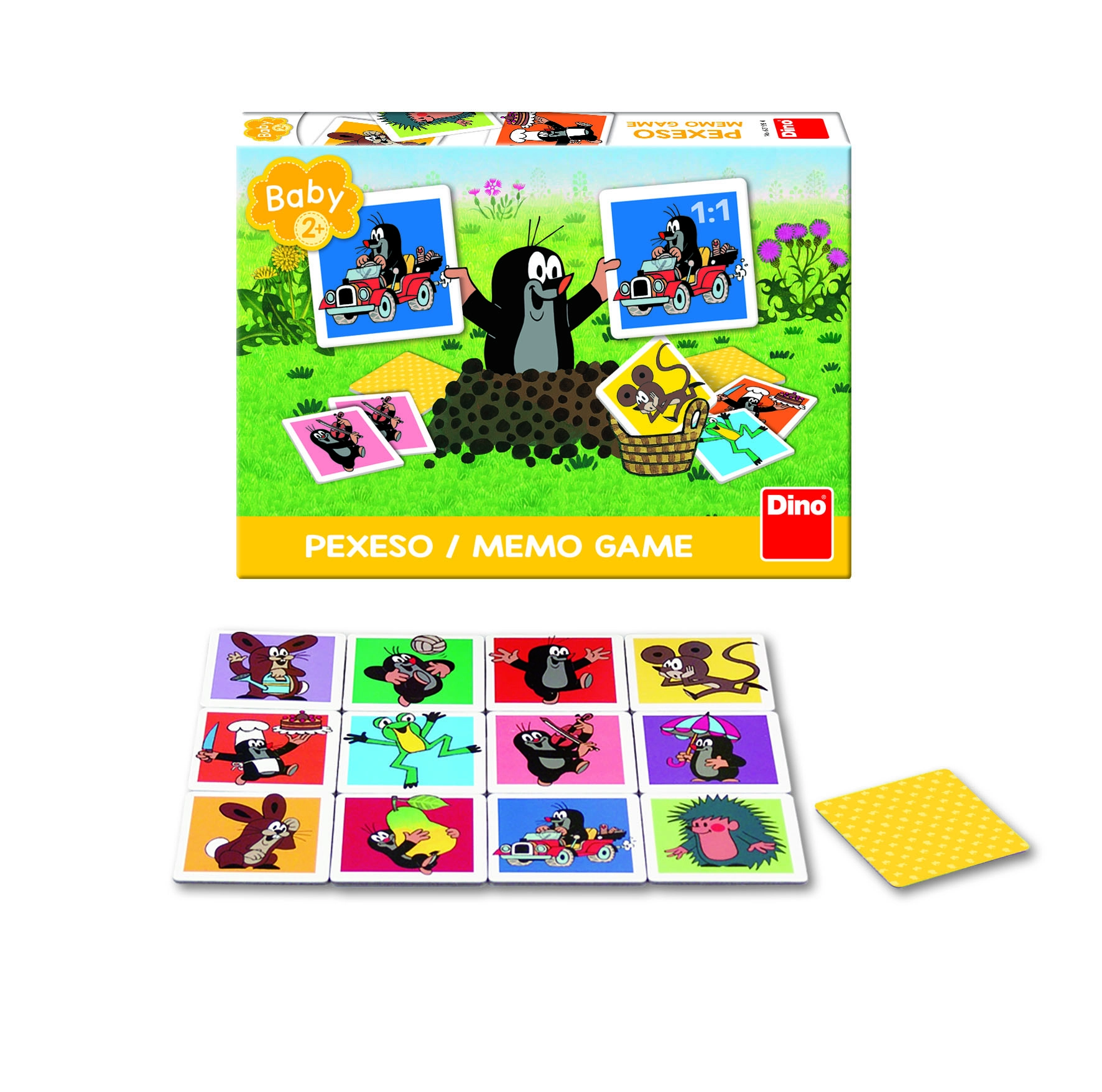 Descubre la magia del clásico Pexeso con el querido Topo de Dino. Este juego divertido y educativo está destinado a niños a partir de 2 años y es ideal para desarrollar la memoria. Cada juego incluye 24 tarjetas con 12 parejas distintas que estimulan el aprendizaje y el reconocimiento.