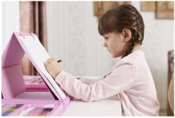 El espacio para dibujar permite que dos niños creen juntos gracias al organizador de doble cara. Sienta a los niños uno frente al otro y disfruten de momentos creativos compartidos.