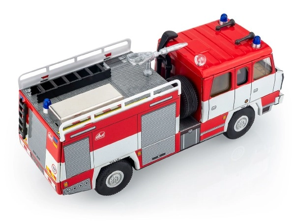 La carrocería detallada, las luces de emergencia y los compartimentos laterales aportan al modelo la apariencia auténtica de un vehículo especial de bomberos real.