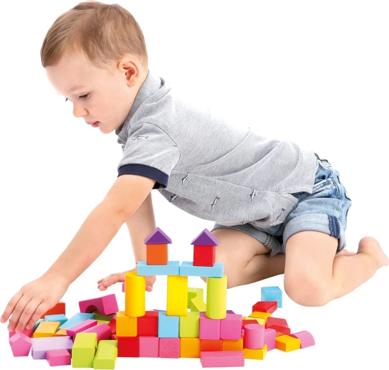 Ideal para niños a partir de 1 año: los bloques tienen una superficie agradablemente lisa, colores vivos y seguros, y una variada gama de formas, desde cubos y prismas hasta cilindros, arcos y triángulos. Jugar con bloques favorece el desarrollo de la percepción espacial, la creatividad y la coordinación mano-ojo.